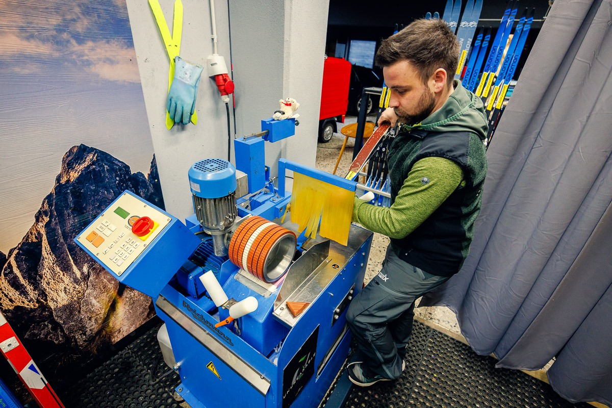 Schnelles gleiten mit geringstem Kraftaufwand. Mit unserer neuen, computergesteuerten Steinschleifmaschine bieten wir perfekte Belagstrukturen für alle Schneearten und Temperaturen an.